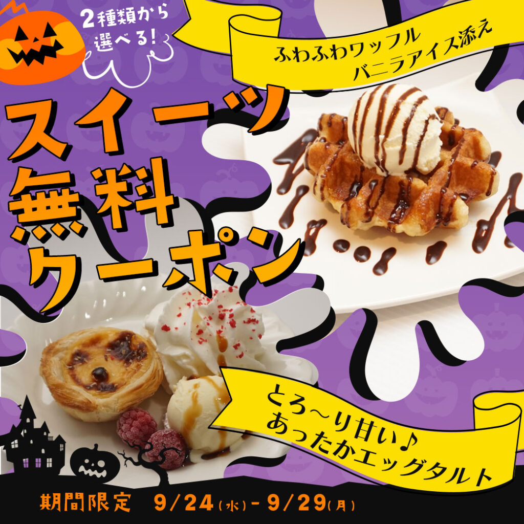 ※+○○円で無料スイーツより豪華なスイーツがもらえるクーポンの場合もございます。