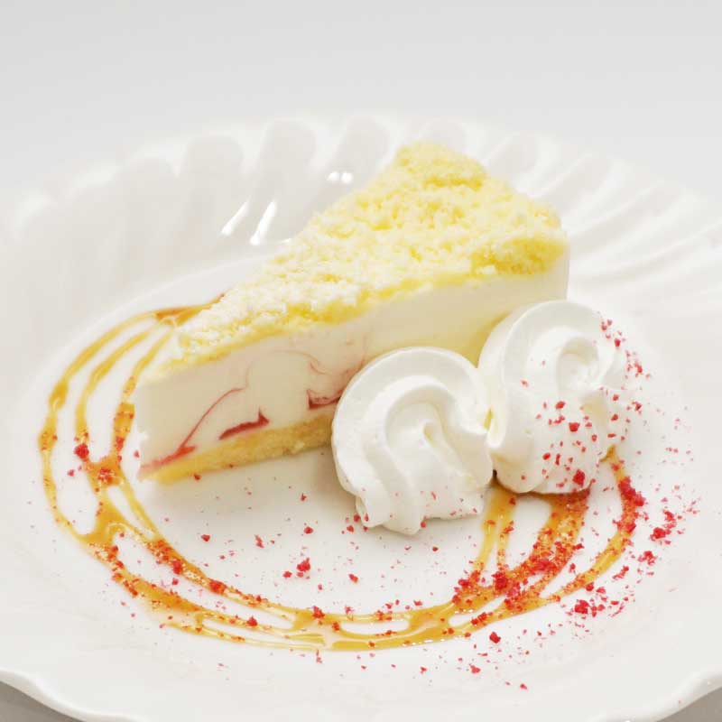 マーブル状に混ぜたあまおう苺の赤が映える、華やかなケーキです。
