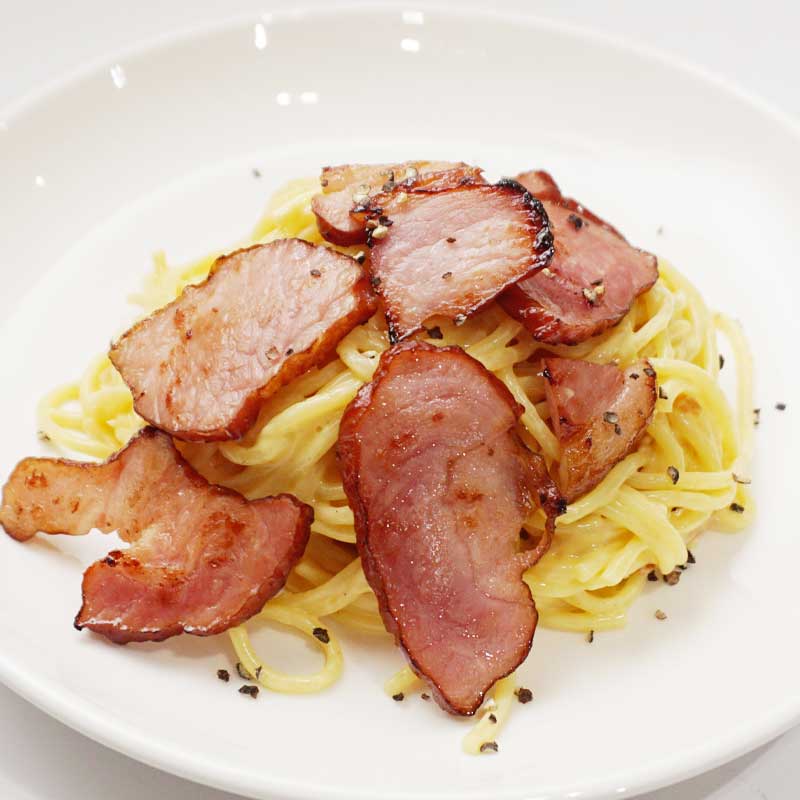 燻製ベーコン山盛りのわんぱくカルボナーラ!