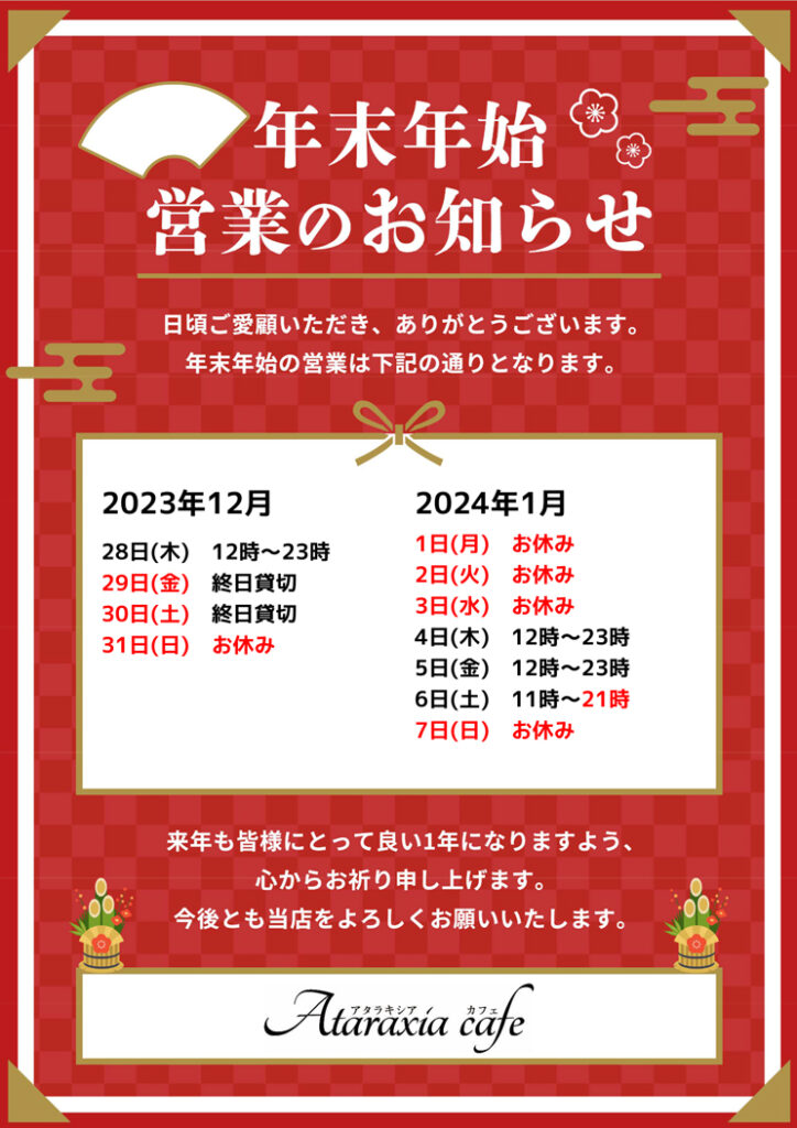 年末年始の営業につきまして